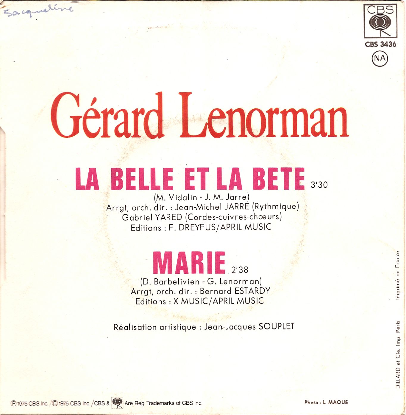 Edition / Distribution : CBS / Série Gémini / Dreyfus