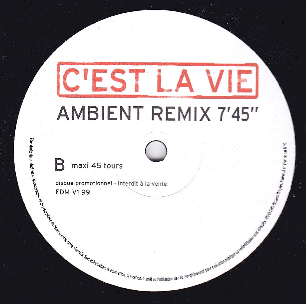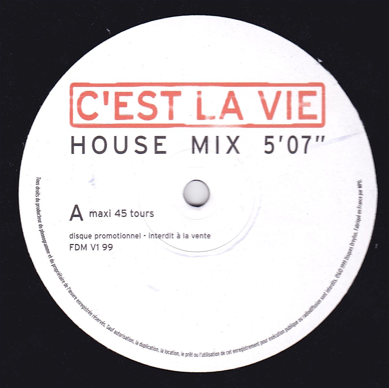 Remarques : Label blanc / Disque Promotionnel
