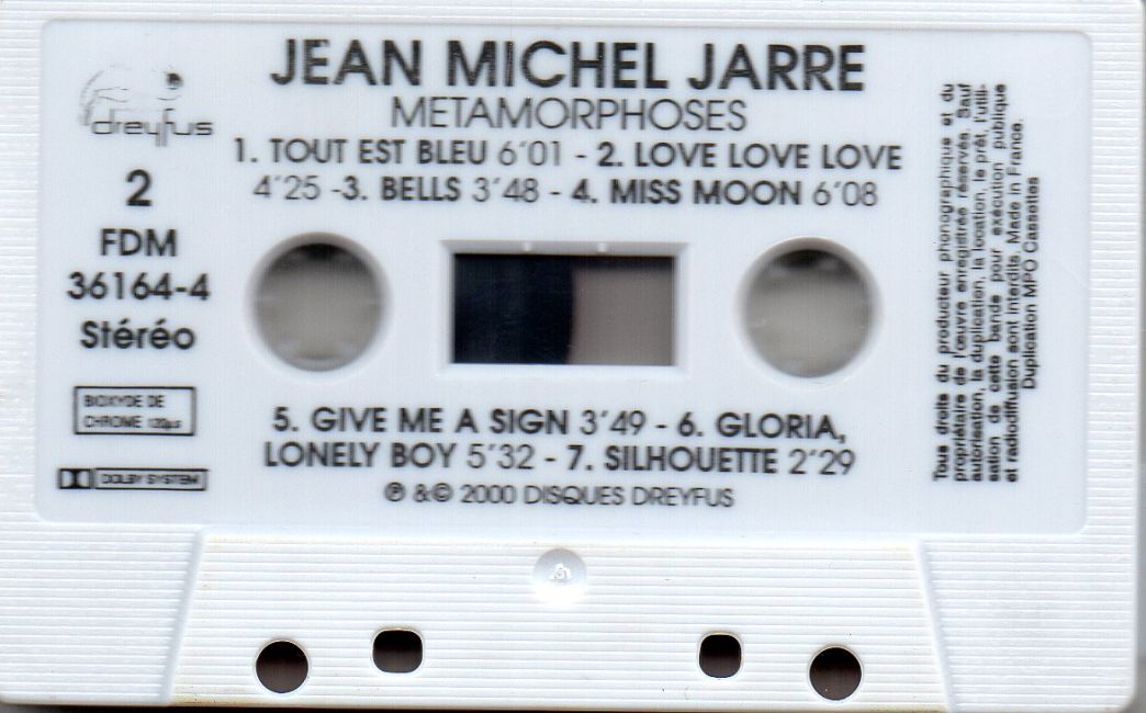 Remarques : Cassette blanche